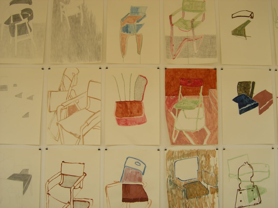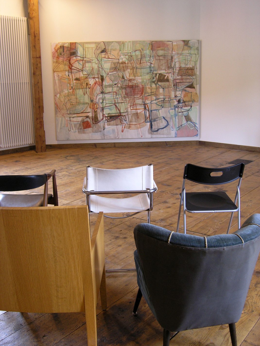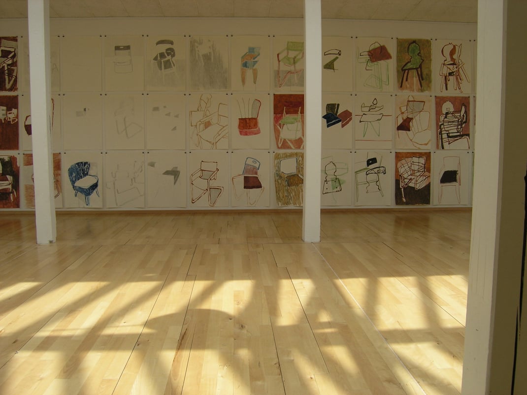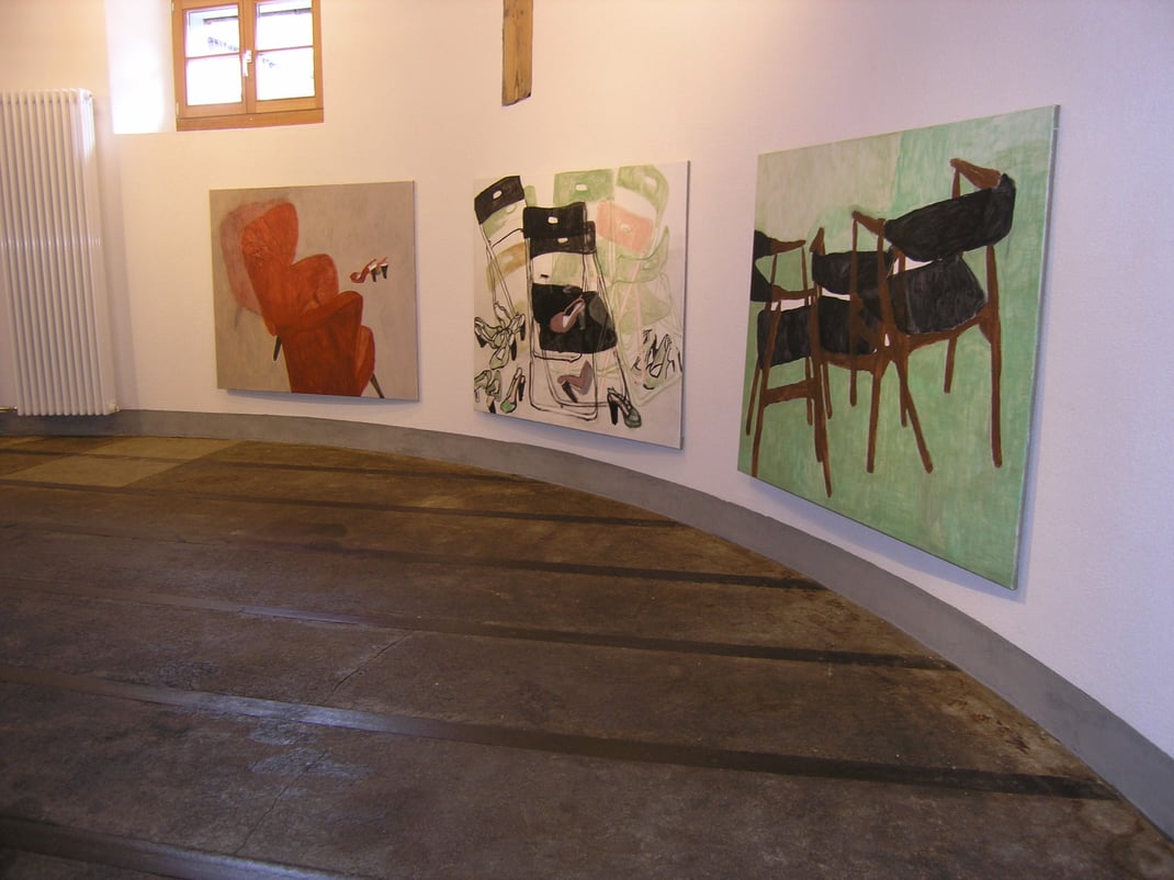 Stühle) durfte sie sich in Folge von sieben Haushalten und Organisationen auswählen und sie für den Zeitraum in dem zur Verfügung gestellten Atelier als Musen verwenden.